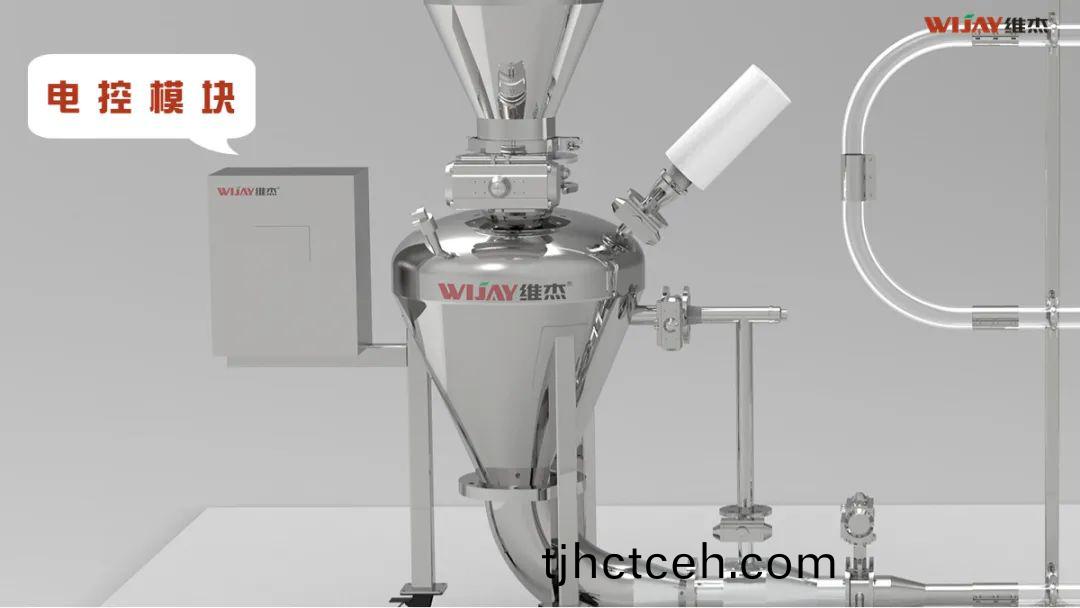 維傑研髮的正壓密(mi)箱輸送(song)係(xi)統(tǒng)由物料暫(zan)存糢塊、電控糢塊、倉(cāng)(cang)泵係統(tǒng)組成;