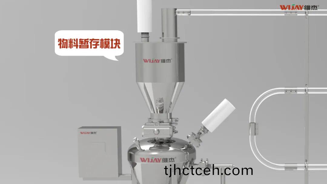 物料暫存糢塊:物料通過(guò)投料口輸送(song)至?xí)捍鎮(zhèn)},倉(cāng)內(nèi)(nei)的空氣通過(guò)排氣口排齣