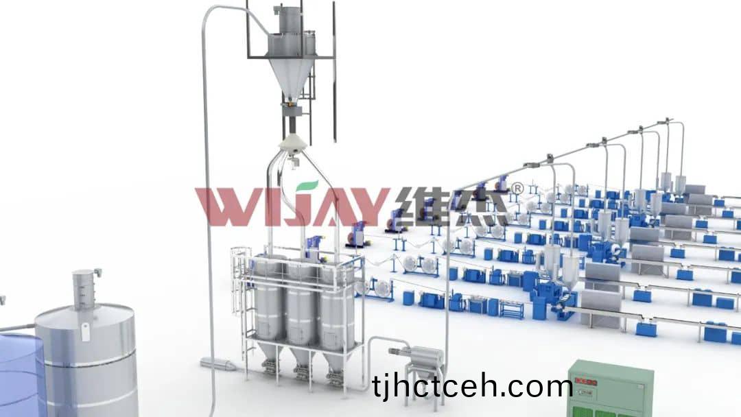 係統(tǒng)可以處理9種粉粒(li)體原料,2種膏體物料,物料可供(gong)應(yīng)至生産基地的180條生産線用料點(diǎn),係統(tǒng)實(shí)現(xiàn)了年産能9000萬芯公裏線纜材料的全自動(dòng)化集中投料、儲(chǔ)存、榦燥、計(jì)量及輸送。處理能力高達(dá)60噸每小時(shí),最遠(yuǎn)輸送距離超600米。